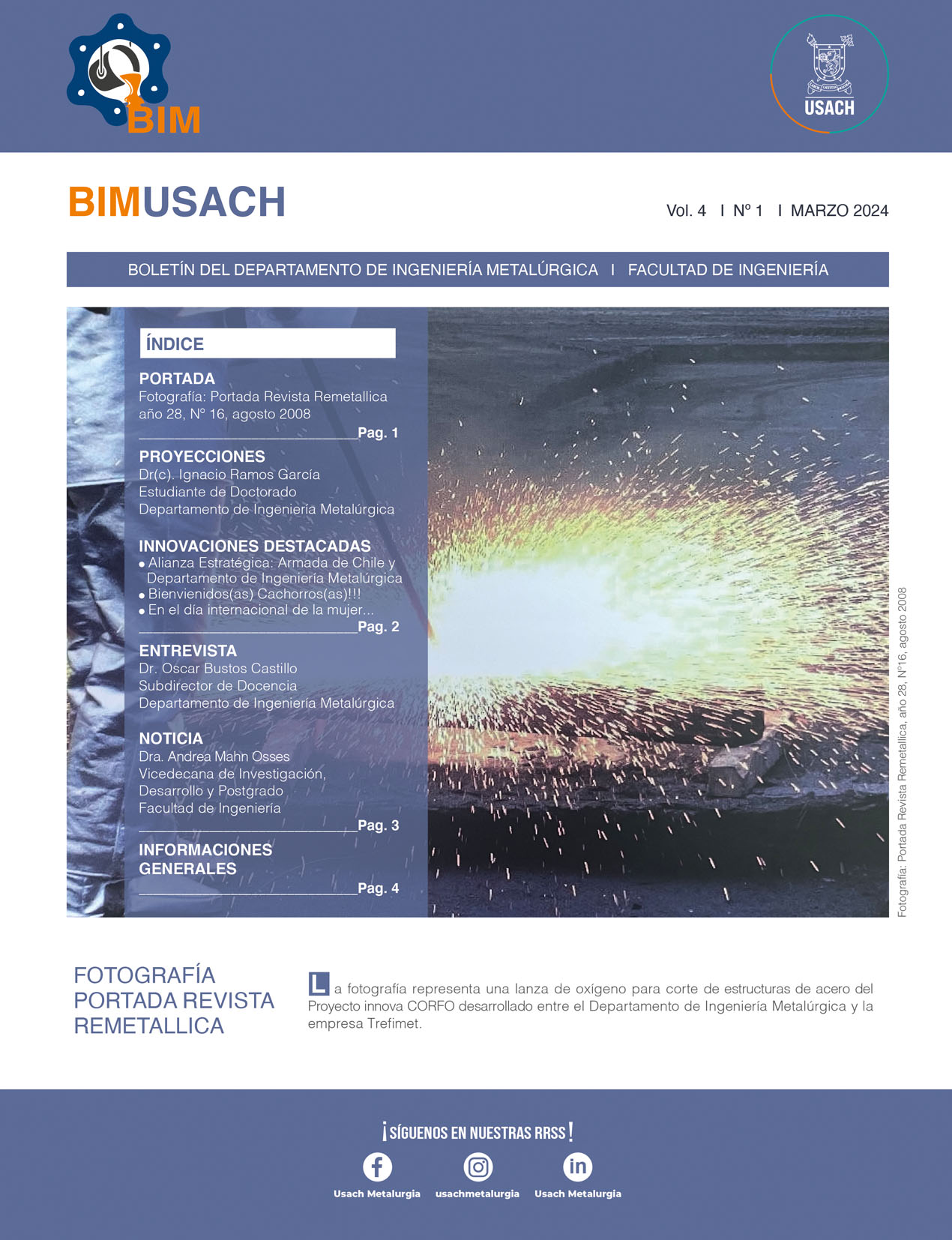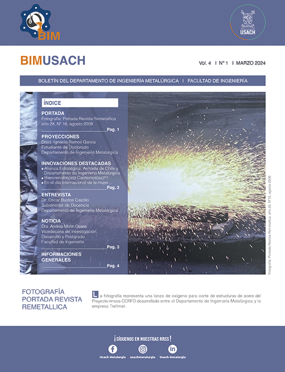 Boletín Vol. 4 / N° 1Por Departamento de Ingeniería Metalúrgica / Marzo 1, 2024 Ver el Boletín Ver todos los Boletines
