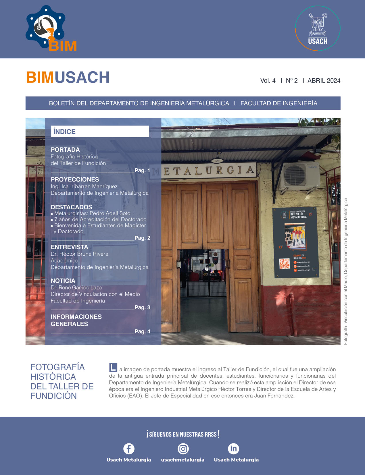 Boletín Vol. 4 / N° 2Por Departamento de Ingeniería Metalúrgica / Abril 1, 2024 Ver el Boletín Ver todos los Boletines